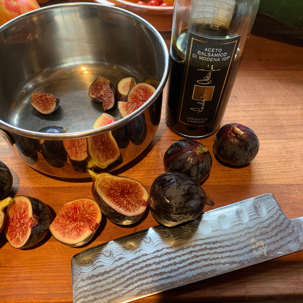 In a saucepan, combine the fig sauce ingredients and simmer on low until the figs are softened and the sauce has started to thicken. Set aside.