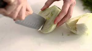 Cut the bottom root section and top of the fennel plant leaving only the bulb.