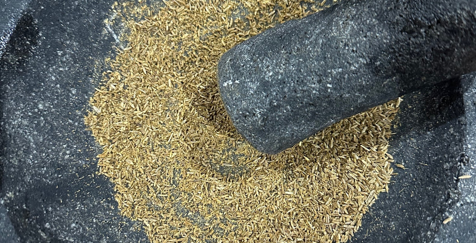 2 tablespoons cumin seeds, ground in a mortar and pestle. It’s so much better when ground fresh.